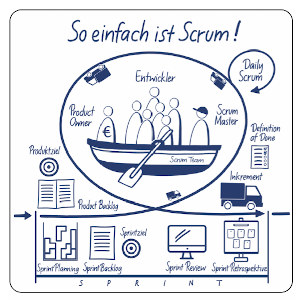 • Sprint Retrospective: Nach dem Sprint Review reflektiert das Team, was gut gelaufen ist, was verbessert werden kann und wie sie dies umsetzen wollen.