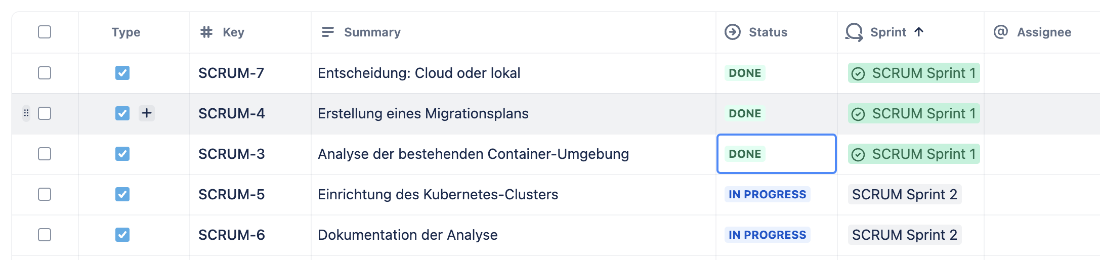 Im ersten Sprint wurde die Analyse der bestehenden Container-Umgebung erfolgreich abgeschlossen. Die Ergebnisse zeigen, welche Anpassungen für die Migration nach Kubernetes erforderlich sind, und schaffen eine klare Grundlage für die weiteren Schritte. Die Entscheidung, ob die Kubernetes-Umgebung lokal oder in der Cloud betrieben wird, wurde getroffen. Erste Überlegungen zur Testplanung wurden aufgenommen, um die Qualitätssicherung in den nächsten Sprints strukturiert umzusetzen. Die Einrichtung des Kubernetes-Clusters wurde begonnen, konnte jedoch aufgrund der Komplexität nicht vollständig abgeschlossen werden.